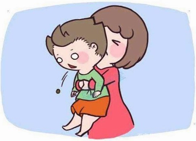 2、抱起孩子,將其臉面朝下,使其身體倚靠在大人膝蓋上;