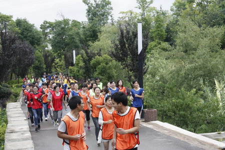 10點(diǎn)運(yùn)動(dòng)會(huì)進(jìn)入入場(chǎng)式,本次運(yùn)動(dòng)會(huì)在經(jīng)開春天文體會(huì)館舉行:共設(shè)4趣味運(yùn)動(dòng)項(xiàng)目:賽馬、時(shí)代列車、袋鼠跳、投籃接力;5個(gè)體育運(yùn)動(dòng)項(xiàng)目:觀山公園慢跑、4×100接力賽、立定跳遠(yuǎn)、拔河、跳繩。全體員工參與了觀山公園慢跑活動(dòng),其中89名運(yùn)動(dòng)員全程參與了運(yùn)動(dòng)會(huì)并以抽簽的形勢(shì)分為6個(gè)組別:紅隊(duì)、橙隊(duì)、淺藍(lán)隊(duì)、深藍(lán)隊(duì)、黃隊(duì)、綠隊(duì)。