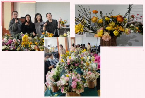 花是美好生活的象征,將春光插進(jìn)花束里,別有一番美麗,在花香繚繞中,大家共同度過(guò)了一個(gè)愉快的節(jié)日,此次活動(dòng)不僅讓大家學(xué)到了插花知識(shí),在豐富了其日常文化生活的同時(shí)還享受插花藝術(shù)的樂(lè)趣,提高了生活熱情,陶冶了情操。在溫馨浪漫的氛圍中,活動(dòng)圓滿結(jié)束。